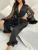 Ensemble de pyjama avec manches à volants en maille contrastée et ceinture, tenue de vacances, vêtements d'automne