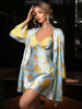SHEIN Ensemble de pyjama femme en faux soie avec patchwork de dentelle contrastée et imprimé floral. Ensemble robe de soie, ensemble robe de lingerie, chemise de nuit et robe, vêtements d'automne